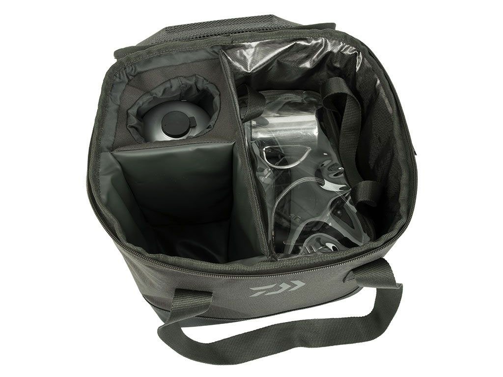 The main compartment is split into three sections to carry different items: stove, kettle and gas canister. The two inner storage compartments are both lined with a wipe clean thermal material, keeping food cool and clean. The mesh inside the lid can hold a plate if needed. It is supplied with an inner PVC bag to store all essential cooking items - this can also be kept separate from the main bag to assist hygiene.