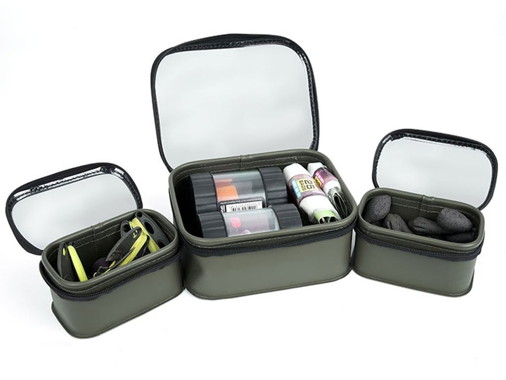Consisting of one small EVA pouch and two EVA mini pouches, which are ideal for use for tackle like leads, backleads, etc. and perfectly suit into the medium accessory pouch. They all feature clear lids for a quick identification of tackle items. Both EVA pouches are designed to fit in the pockets of the IS Low Level Carryall and IS Low Level Ruckall.