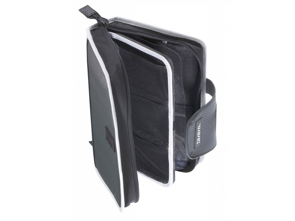 S ponosom predstavljamo inovativni način spremanja varalica koji dolazi iz Japana. Radi se o novim DAIWA torbicama za varalice. Vorbleri i druge varalice mogu se uredno spremiti i savršeno su zaštićeni od vanjskih utjecaja. Varalice zakačene jedna za drugu su prošlost. Ova vrhunska torba XXL veličine u karbonskoj mrežastoj izvedbi je čudotvorna kada se radi o prostoru koji nudi. Ovisno o veličini varalice može se spremiti do 60 voblera i žličastih varalica. Zahvaljujući odjeljenim pjenastim pločama od EVA materijala moguće je odložiti voblere tako da se izbjegne međusobno zakačivanje čime se osigurava brza zamjena varalice. Na ovaj način skupi vobleri odgovarajuće su spremljeni a potrebna varalica je nadohvat ruke. Unutar torbe nalaze se 4 zasebna pretinca sa čičak trakom čime se dobiva dodatni prostor za odlaganje predveza, kliješta, vrtila itd.