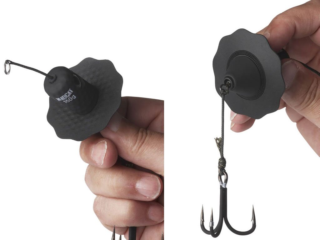 In heavily pressured waters, the catfish is still attracted by the clonk teaser, but when it approaches the lure, it may get suspicious, because of the ticking beads. What is then needed, to trigger an attack, is the turbulence of an escaping bait fish – without sound! The MADCAT A-STATIC Silent Teasers are developed to produce as much as possible turbulence, caused by the skirt with a waved edge and golf ball dimples, on both the body and the skirt. Grooves at the bottom of the skirt, makes that the skirt folds away easily when the teaser is lowered (but spreads firmly when lifted). In other words: it will create as little as possible turbulence when lowered but as much as possible when lifted. The MADCAT A-STATIC Silent Teasers are so sophisticated that it will fool even the weariest catfish again. A-STATIC, meaning: rubber coated, to minimize the electric field that spooks catfish. Note: the coating can wear off during usage.