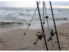 Aluminium, V-profile beach rodrests. Adjustable in height. The plastic parts are glow-in-thedark so that the angler will have no problem placing his rod in the rest or finding it back when it is dark. Simple but effective. Available in 75 and 125cm.