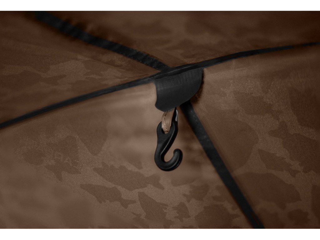 The flagship in the bivouac segment from Delphin. This is the C-3 LUX CARPATH bivouac, intended for the most demanding fishermen. The extra strong garage construction with three ribs guarantees uncompromising stability in any weather conditions. Together with the used fabric of the highest quality and completely taped seams, it can also withstand strong storms, wind and a large amount of precipitation. The undeniable advantage of the bivouac is the fabric with the popular CARPATH pattern, which will surely delight all fans of this original camouflage. Thanks to the dimensions of the bivouac, it can easily fit 2 sunbeds, while still leaving a generous space inside for movement, but also for bags and other equipment components needed for a comfortable stay by the water. If necessary, the interior can hold up to 3 sunbeds. Of course, there are also two handles for fixing the rods, but also a large visor, which provides protection from the sun or rain. Inside, there are 2 hooks on the ceiling of the bivouac for hanging a lamp for example.