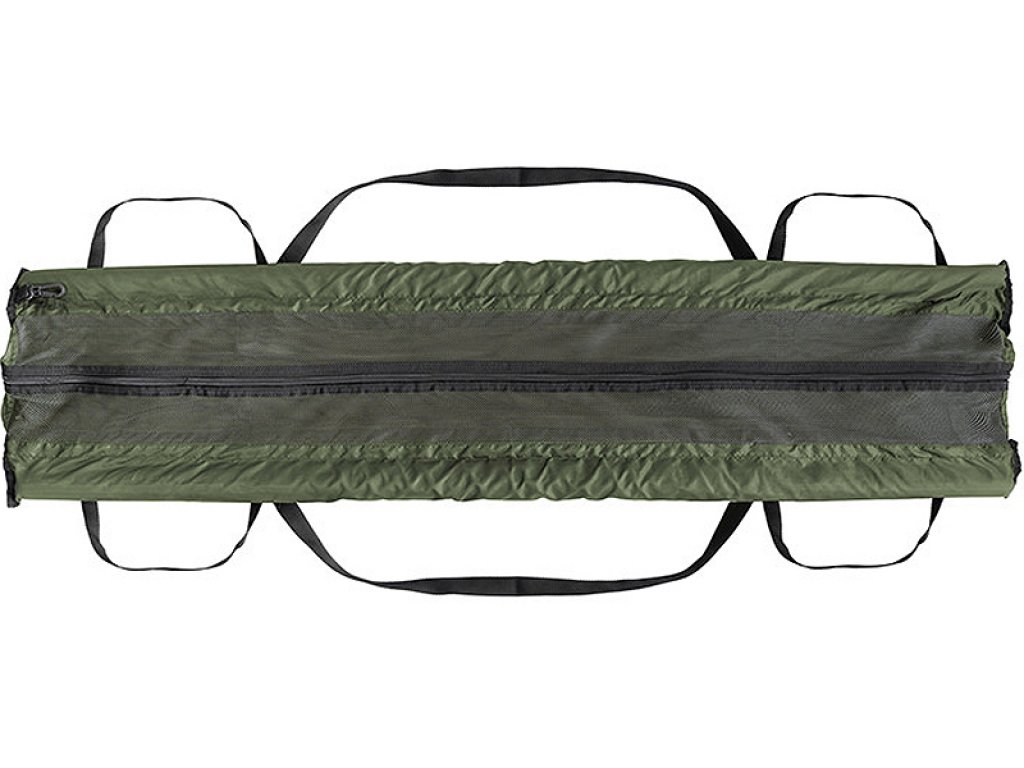A practical weighing bag suitable for secure weighing or for a short-time keeping of the fish, now available in an XXL version. Just like all the CLASSA series products, this high-quality bag is functional and affordable. It has floats on the edges to safely keep your catch in the water while you get ready with your camera. The main part has a soft mesh that’s gentle on the fish. When manipulating or picking up the bag, all the excess water gets drained for more precise weighing results. The mesh has two textile straps you can use to grab and hook the bag on the scales. Plus, it has two extra textile handles on both sides for easy transport. There is a big zip on both sides and on the top to unzip it almost everywhere for better manipulation with the fish. In addition, the bag is fitted with a 5 metres long anchor rope with a thread at the end. This way, anchoring on the shore is absolutely safe. The rope is placed in a small pocket on the side of the bag. There is also a clip on the side to keep the zip sliders in place to prevent the bag from opening.