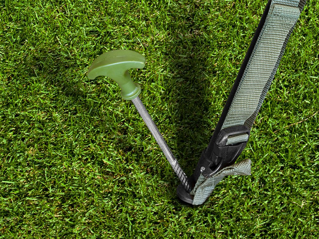 The stakes have green plastic tops that won’t come loose or slide downwards even after being staked to the ground multiple times. A drill with a durable four-sided spike makes it easier to penetrate the hard and dry soil. The spikes are fitted with transport covers for protection. In addition, this product includes a rubber hammer with a handle made from metal and black rubber to easily hammer them into the ground.