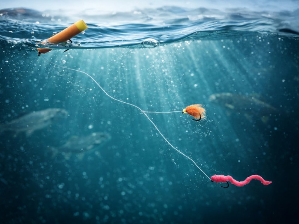 The set also contains a foam fly that’s used as a floating bite indicator. It’s the first component that’s tied on from the fly line and serves as a float for suspending other weighted flies. When fishing with multiple flies, we recommend keeping a distance of at least 50 cm to cover multiple layers of the water column.