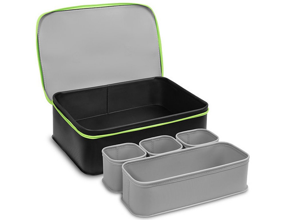 The main advantage of the EVA material is that it’s completely waterproof and easy to maintain. Plus, it doesn’t absorb odors—this is especially convenient when transporting aromatic boosters, and wet or dirty feeders. This model is a versatile accessory that won’t let you down on your feeder fishing trips.