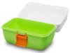 A sturdy plastic clip and handle on the lid ensure safe transport. They are both designed in orange colour.