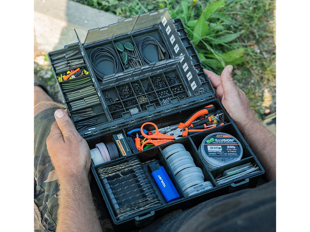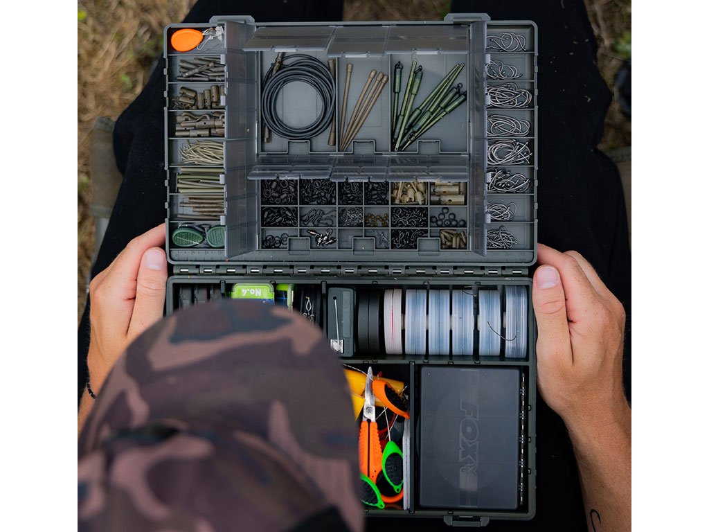 The New Fox Tackle Box range has taken the legendary Fox F-Box concept. Using the entire lid as additional end tackle storage, we have maximised capacity whilst keeping the box as compact as possible. The lid comprises of 37 individual compartments, featuring improved, pinned hinges and smoked tinted closers that allow products to be seen inside.