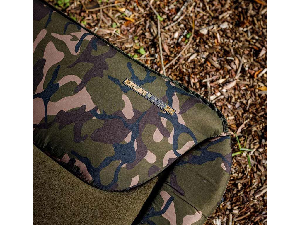 -Mattress is covered with a camo peach skin fabric perimeter and head area with a comfy fleece main section