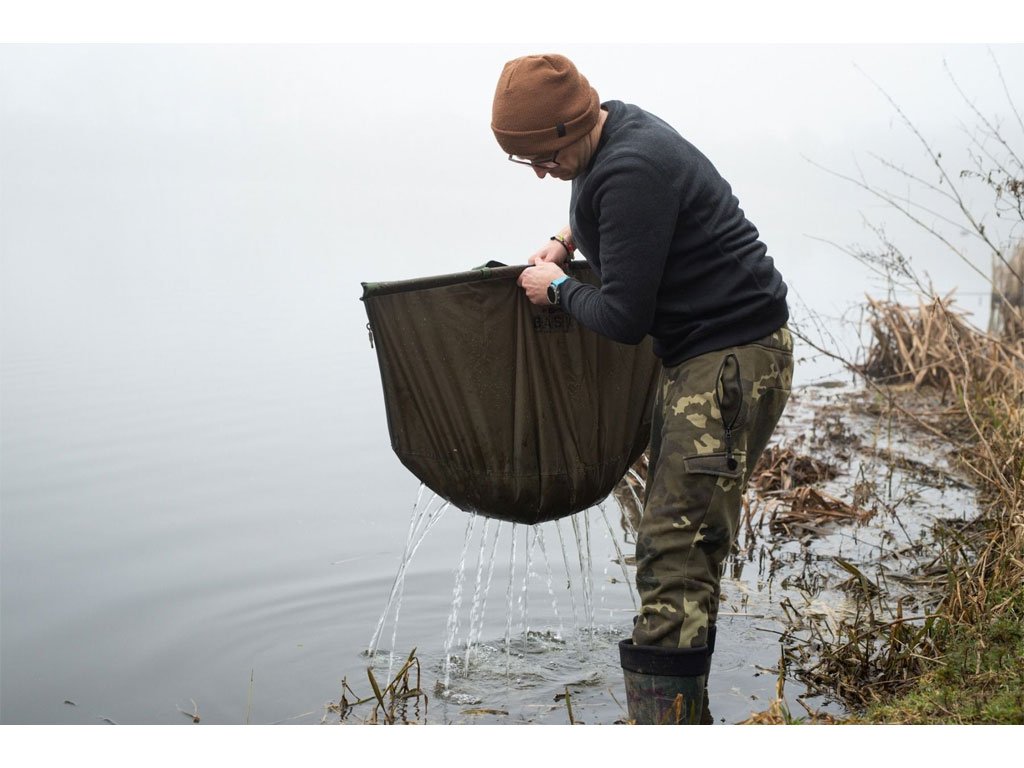 This weigh sling is constructed from a durable nylon material and is long and deep enough to weigh any carp that you are likely to catch in the UK, and is also suitable for use overseas on many venues. It features strong, lightweight powder-coated two-piece metal bars at the top, to give rigidity and to help make the weighing process safer for the fish. When not in use these bars can easily be split in the middle – they are elasticated - and the sling folded back into the compact stink bag that is supplied with it (the folded length allows it to fit inside the Basix Cradle unhooking mat or inside an exterior pocket on a Compac Rod Holdall).