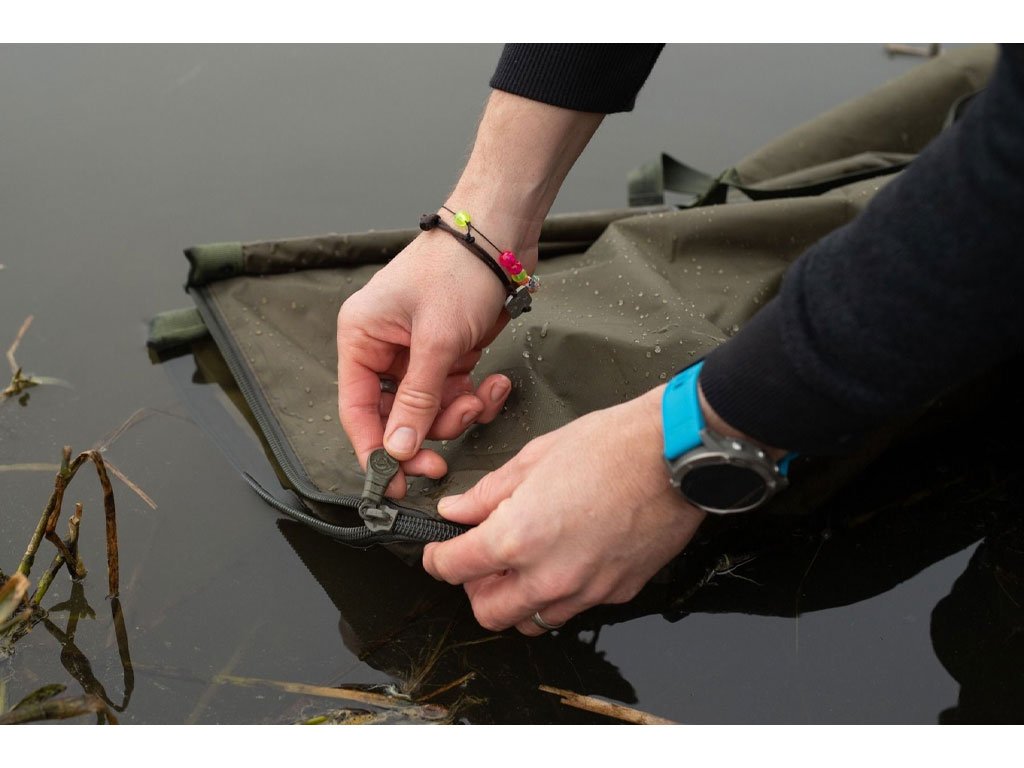 A good quality, free-running zip at each end of the sling ensures that the fish can’t slide out during transit or weighing, and is easy to do up or undo. The sling has been designed to float, so as to enable the easy transfer of the fish and rolled up net into it in the water – this ensures no lifting of the net is required, thus reducing the risks of splitting or damaging the fins and tail. The box that the Basix Weigh Sling is supplied in features a step-by-step guide on the best weighing practice.