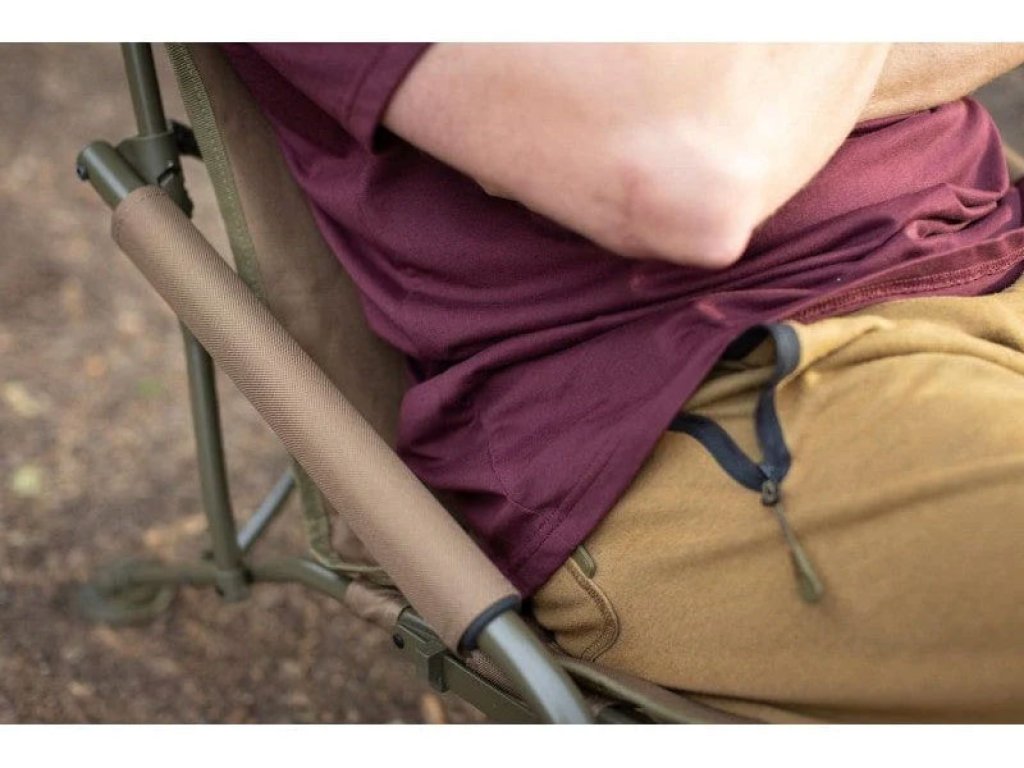 The Korda Compac Low Chair features an aluminium frame and concertina design. These features not only make the chair extremely lightweight but also very compact, making it ideal for loading onto a barrow, packing away in your bivvy or for transportation. With fully adjustable mud feet, the Low Chair is easily levelled on uneven ground, offering an extremely stable stance. As the name suggests, the Low Chair offers a low-profile viewpoint, making it ideal for watching the water under the front of your bivvy when weather conditions dictate shade or shelter. The arms and headrest are also padded, making the chair very comfortable to sit in over long periods.