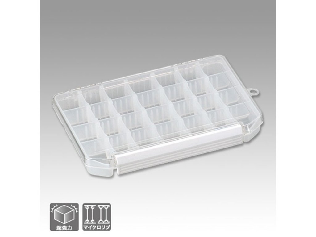 The Meiho Clear Case 800ND is a plastic utility case that features 2 fixed dividers and 18 removable compartment dividers for a total of 21 possible fishing storage compartments. The Clear Case gets its name thanks to its crystal clear attached hinged lid which gives users great visibility inside the case when closed. Thanks to the varying compartment sizes, the clear case is great for fishing supplies ranging from hooks and weights to lures and rigs.