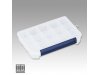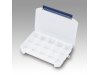The Meiho Free Case 800ND is a plastic utility case that features 2 fixed dividers and 16 removable compartment dividers for a total of 19 possible fishing storage compartments. The Free Case has an attached hinged lid that features a long, sturdy plastic latch that keeps the lid shut during transport. Thanks to the varying compartment sizes, the free case is great for fishing supplies ranging from hooks and weights to lures and rigs.