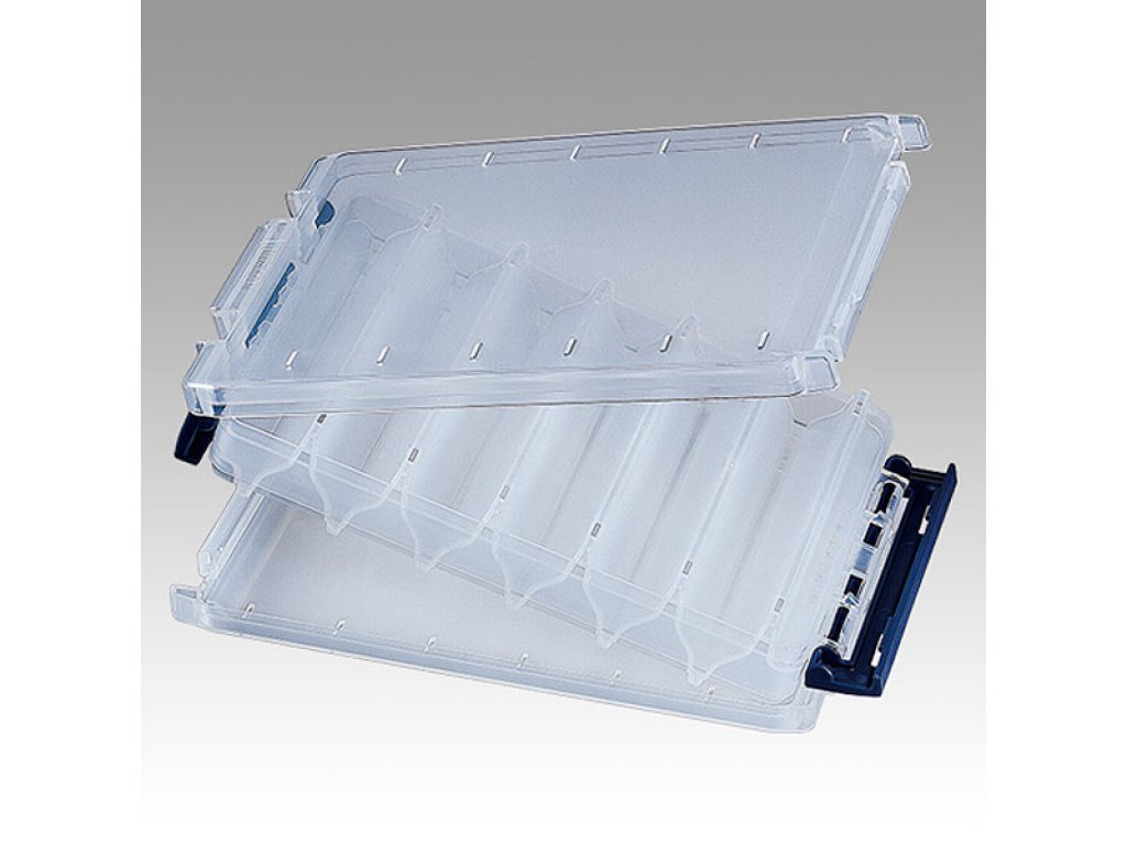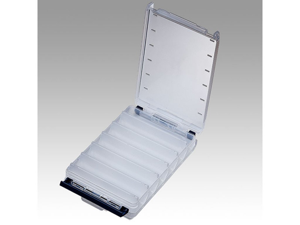 This case features 5 plastic ridges that create perfect slots for your fishing lures. Two sides, two lids, and two sets of lure holders on either side of the clear plastic container.