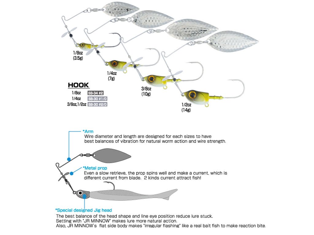 Combination of the currents from blade and prop fuses the spinner bait and plastic worm.