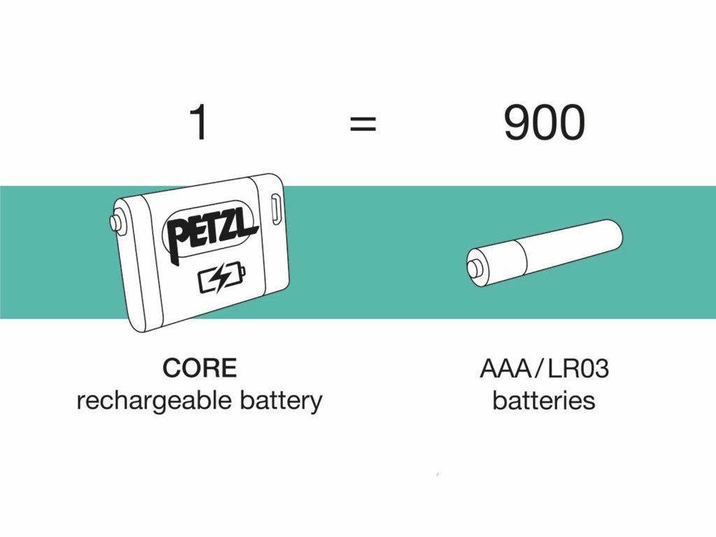 Rechargeable battery for Petzl headlamps with HYBRID CONCEPT design. Its high-capacity 1250 mAh lithium-ion battery provides excellent lighting performance, even at low temperatures.