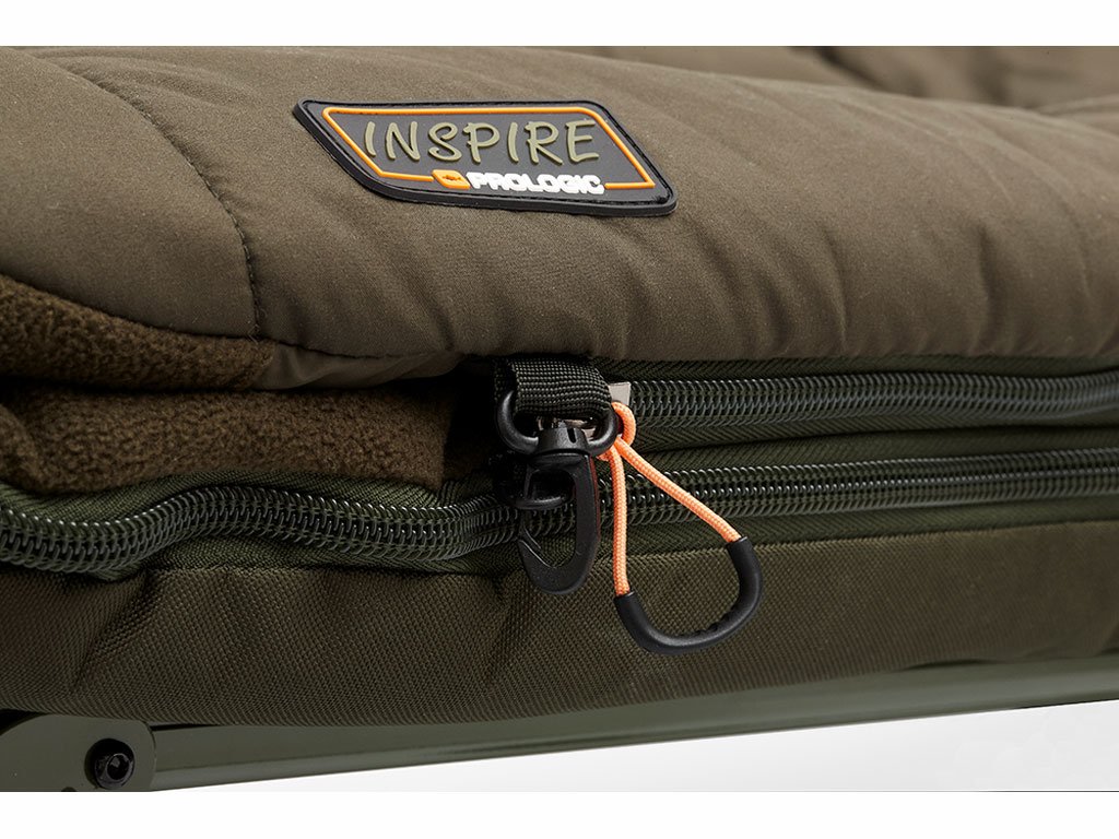 A serious carp fishing session can sometimes mean compromising on a good night’s sleep, but not anymore. The Sleep Systems are based on the Inspire eight-leg Daddy Long and six-leg Relax bedchairs respectively, both of which offer fold-flat profiled frames with double fold space-saving hinges, and lumbar support mattresses made with the best high-density foam. In short, these bedchairs offer a more comfortable night’s sleep in a bivvy than you thought possible. Whichever bedchair you choose, in these Sleep Systems they are paired with our new five-season sleeping bags, securely attached by a full-length, 360-degree zipper, which starts at the head section to allow the angler to position their pillow perfectly. The sleeping bags are made using extremely durable, soft-touch peach skin outer fabric shells that enclose generous layers of memory-treated, deep-filled hollow fibre, ensuring unrivalled levels of insulation. This inner fibre also helps the sleeping bags retain their shape to further boost heat retention efficiency. The internal shell is fitted to the shape of the bag, eliminating tangles and restriction for those anglers who prefer to sleep clothed, while micro fleece on the head and chin sections offers further comfort and helps keep your pillow in place. The sleeping bags are finished with heavy-duty crash zips with high-vis pullers, anti-jam beading as well as generously padded, oversized anti-draft baffles and zip-lock secures to prevent zippers opening unnecessarily. These amazing systems have been specifically designed to offer the highest levels of luxury and comfort in carp fishing. The only thing that will interrupt your slumber is the sound of a bite alarm when you hook a monster.