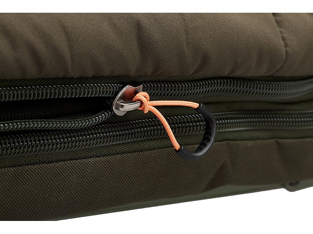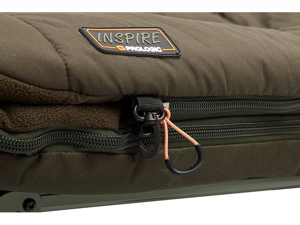 The Sleep Systems are based on the Inspire eight-leg Daddy Long and six-leg Relax bedchairs respectively, both of which offer fold-flat profiled frames with double fold space-saving hinges, and lumbar support mattresses made with the best high-density foam. In short, these bedchairs offer a more comfortable night’s sleep in a bivvy than you thought possible. Whichever bedchair you choose, in these Sleep Systems they are paired with our new five-season sleeping bags, securely attached by a full-length, 360-degree zipper, which starts at the head section to allow the angler to position their pillow perfectly. The sleeping bags are made using extremely durable, soft-touch peach skin outer fabric shells that enclose generous layers of memory-treated, deep-filled hollow fibre, ensuring unrivalled levels of insulation. This inner fibre also helps the sleeping bags retain their shape to further boost heat retention efficiency. The internal shell is fitted to the shape of the bag, eliminating tangles and restriction for those anglers who prefer to sleep clothed, while micro fleece on the head and chin sections offers further comfort and helps keep your pillow in place. The sleeping bags are finished with heavy-duty crash zips with high-vis pullers, anti-jam beading as well as generously padded, oversized anti-draft baffles and zip-lock secures to prevent zippers opening unnecessarily. These amazing systems have been specifically designed to offer the highest levels of luxury and comfort in carp fishing. The only thing that will interrupt your slumber is the sound of a bite alarm when you hook a monster.