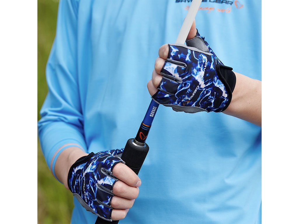 Designed in collaboration with Savage Gear’s team of expert anglers in southern Europe and the Mediterranean, these Marine gloves are perfect for all kinds of warm weather saltwater fishing. Made from a quick-drying stretchy fabric that offers SPF30 protection, the gloves feature a suede-feel fabric on the palms complete with non-slip grip dots on the fingers. The elastic section on the back of the hand ensures a comfortable fit while tabs on the two middle fingers help you remove them quickly and easily.