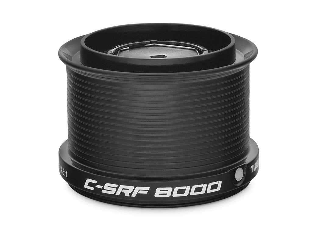 Full carbon body for this captivating top of the range surfcasting reel. To further lighten the reduced weight, it mounts a size 8000 ultralight aluminum spool fully discharged, with carbon disc clutch, it also has two other spare spools: a smooth aluminum version of size 9000 and one in plastic material of size 8000, to have different diameters or yarns available. With a very fluid recovery, it is equipped with six ball bearings plus one roller and a 4.6: 1 recovery ratio. The sturdy crank features a comfortable EVA knob.