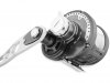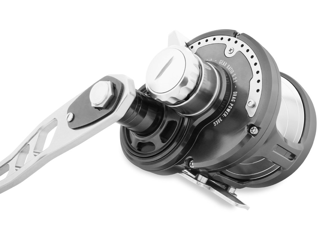 Left-hand trolling reel, fully crafted from solid metal with a total weight of just 570 g. Equipped with 9+2 saltwater-resistant steel bearings, it ensures an exceptionally smooth and enjoyable retrieve. Despite its compact size and a maximum drag of 30 kg, the drag system allows for precise adjustment to achieve the ideal setting at all times. The handle, featuring an ergonomic metal knob, can be mounted in two positions with lengths of 110 or 96 mm, adapting perfectly to any need.