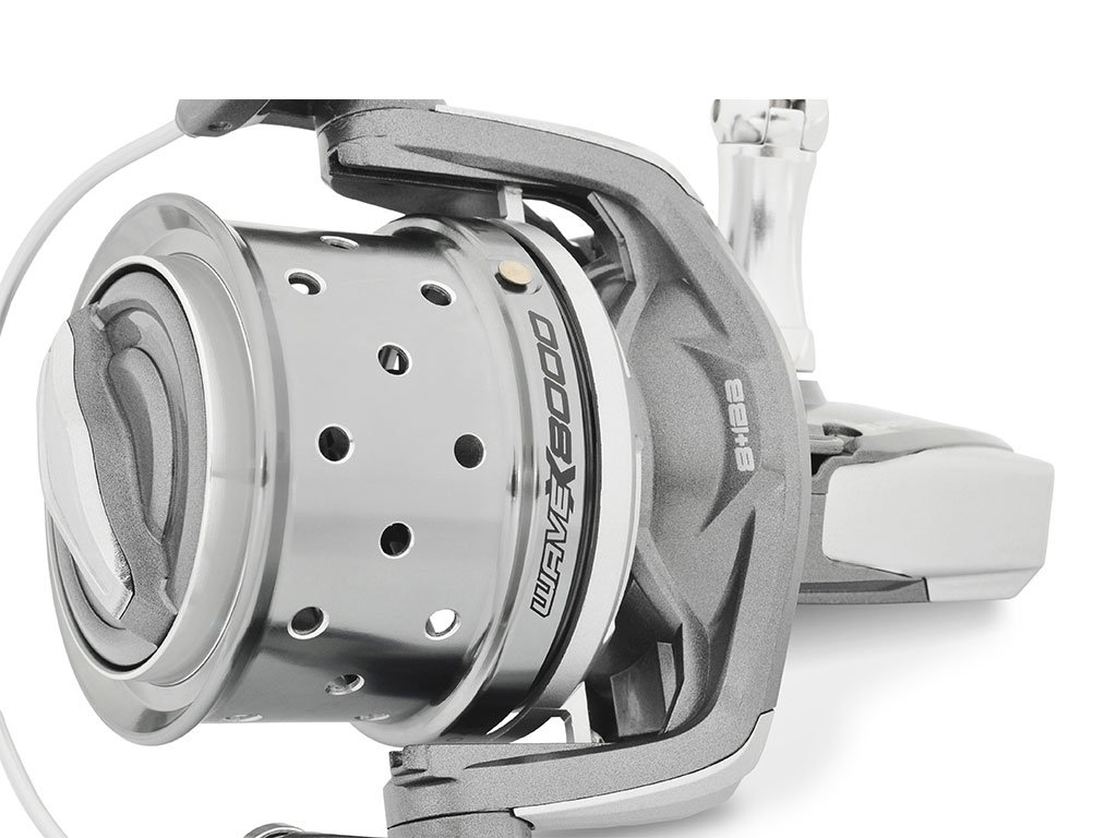 Well-made surf casting reel, equipped with eight ball bearings plus one roller bearing and 4.6: 1 gear ratio. The three reels supplied allow you to have monofilaments or braided lines of different diameters, just in case. A smooth version in aluminum of size 9000 is available, one in plastic material of size 8000 like the one in aluminum with lightening holes fitted at the factory. The sturdy crank features a comfortable EVA knob.