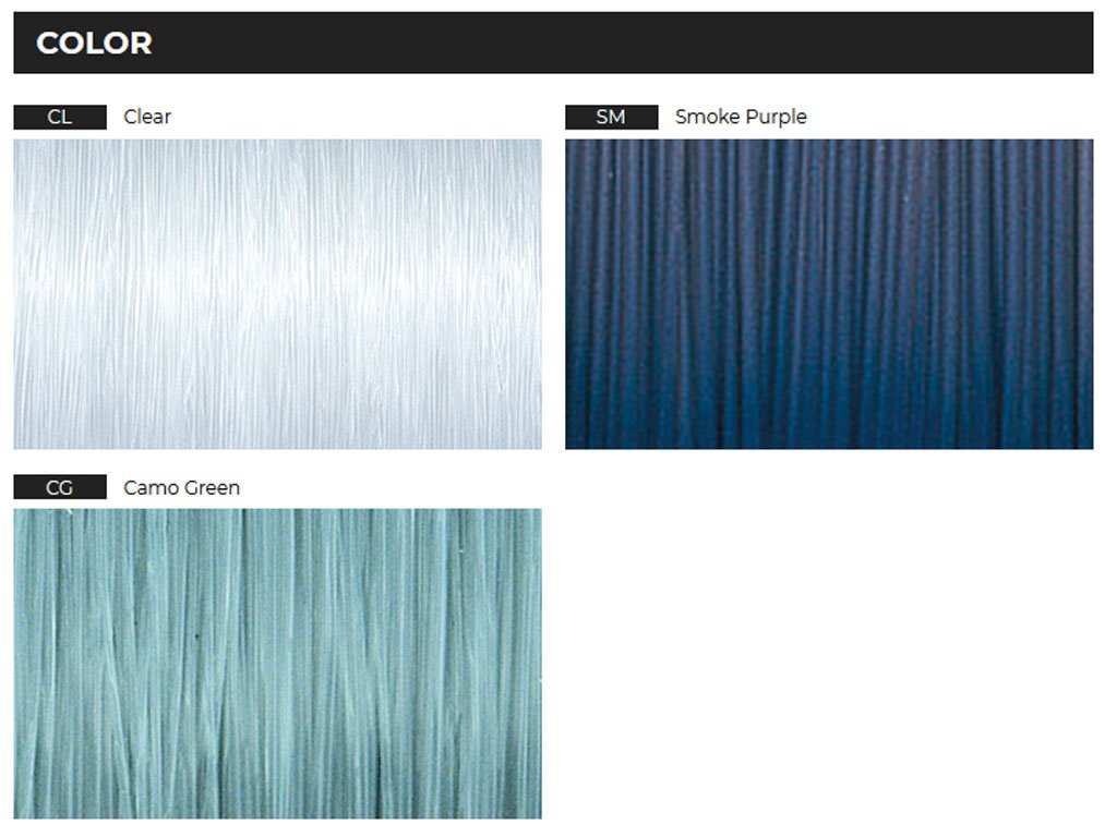 COLORS: CLEAR (CL), CAMO GREEN (CG) and SMOKE PURPLE (SM)