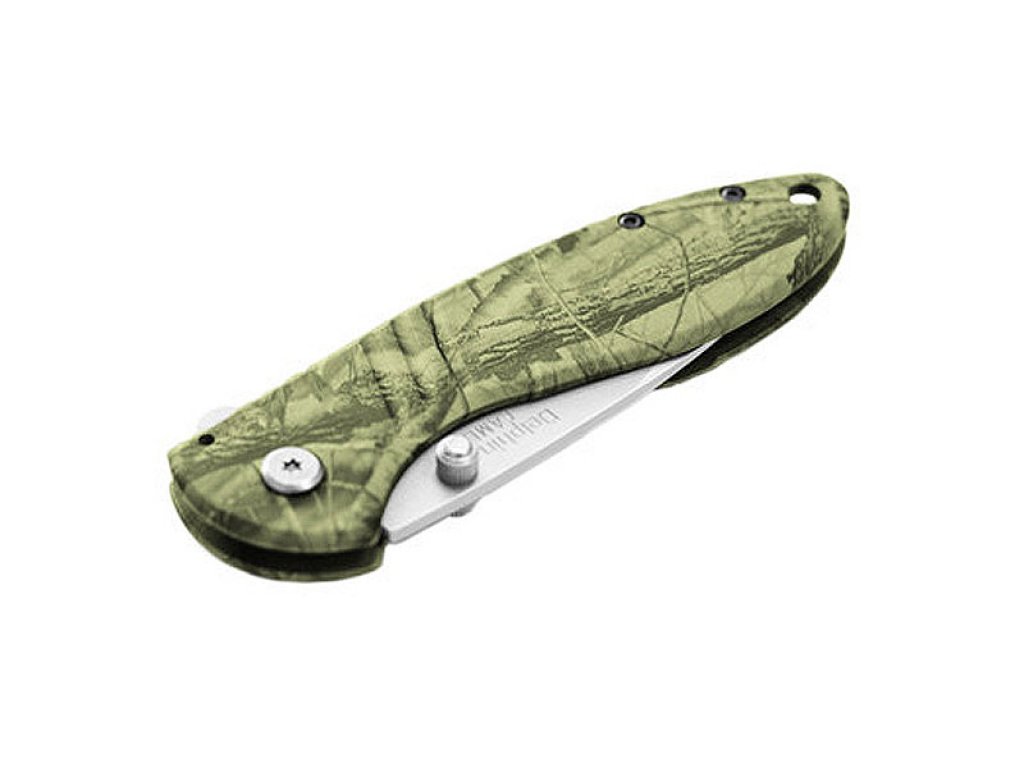 Camu je čvrst sklopivi nož napravljen u potpunosti od metala i posebno za one koji vole maskirne uzorke. Matirana oštrica od 8.5cm se zaključava pomoću posebnog opružnog mehanizma za zaključavanje koji se nalazi na donjem dijelu drške.