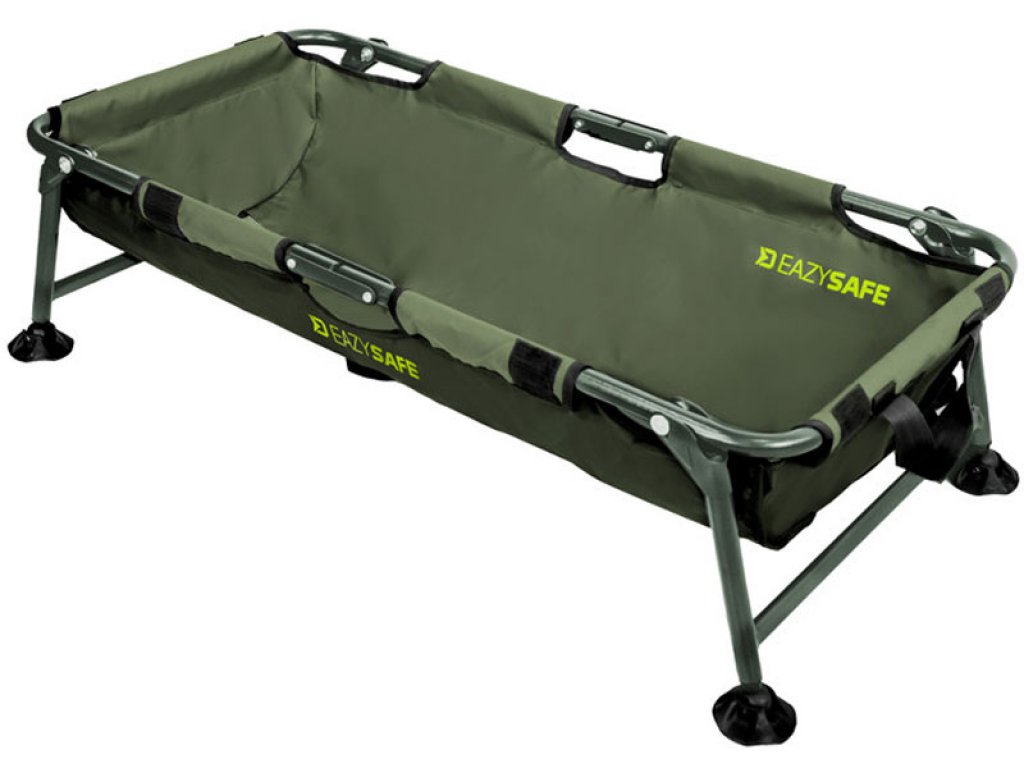 Baza ladice je vrlo čvrsta željezna konstrukcija s promjerom cijevi do 22 mm. Zahvaljujući tome, pladanj ima izvrsnu stabilnost i ne postoji opasnost da se prevrne ili ošteti prilikom rukovanja ulovom. Materijal gumirane površine koji se koristi ima nekoliko prednosti. Dovoljno ga je obrisati do suhog i nije potrebno dugo čekati da se osuši nakon ribolova. Osim toga, vrlo se lako pere i ne upija neugodne mirise koji se mogu pojaviti u vašem automobilu. Cijela kada je vrlo jaka i tijekom ekstremnih testova uspjela je bez problema podnijeti statičku težinu do 75 kg! Na oba ruba našivena je mrežasta tkanina kroz koju voda lako otječe iznutra. EAZYSAFE ima pokrovnu tkaninu opremljenu čičak trakom. U njemu možete zatvoriti ribu, ako npr. trebate pripremiti kameru, ili otići po vodu da polijete ulov. Noge su opremljene zglobnim stalcima, koji se prilagođavaju terenu i sprječavaju poniranje u tlo na mekšoj podlozi. Prilikom dizajniranja ovog proizvoda razmišljali smo i o transportu, što je još jedna prednost ovog proizvoda. Po sredini je konstrukcija genijalno podijeljena pa ju je dovoljno jednostavno preklopiti na pola i udobno nositi uz pomoć ručki.