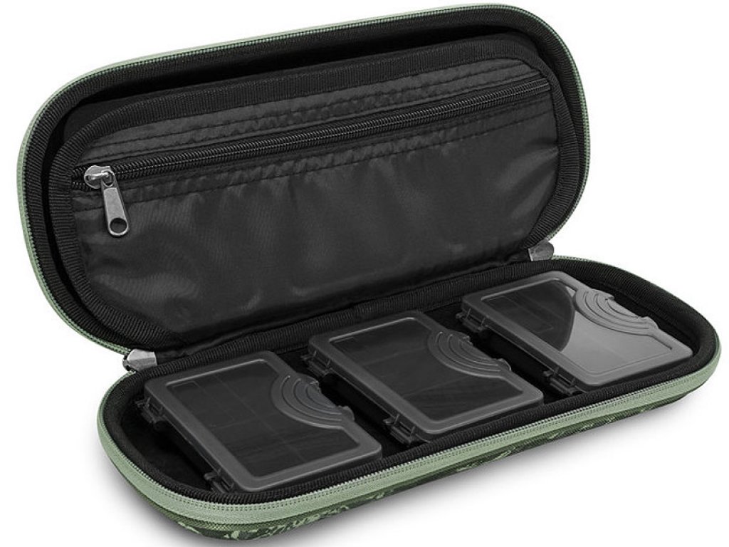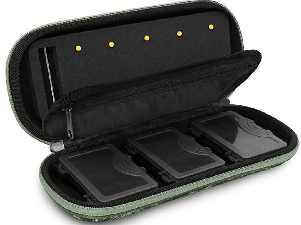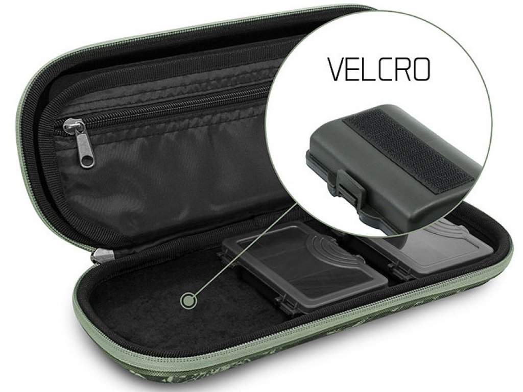 Iznutra je kofer podijeljen na tri dijela: lijevi je izrađen od pjene (26x10x1 cm) i ima 10 žutih pribadača za spremanje opreme, desni ima tri pojedinačne kutije za šaranski pribor (10x7x2,5 cm) i treći je pregrada u sredini s džepom na zip. Ovdje možete spremiti škare ili druge sitnice. Ovaj vrhunski model je apsolutno jeftin!