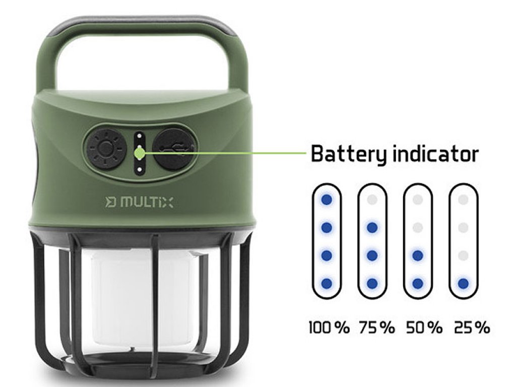 Delphin MULTiX je praktična punjiva kamperska lampa koja spaja snažan svjetlosni učinak, dug vijek trajanja baterije i robusnu konstrukciju. Osim što pruža pouzdano osvjetljenje u raznim uvjetima, zahvaljujući USB-A priključku može poslužiti i kao power bank za punjenje vaših uređaja.
