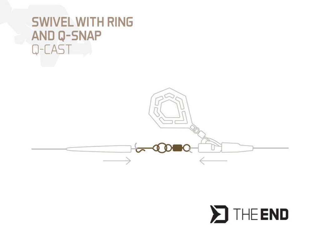 TheEND Q-Cast je specijalna vrtilica s prstenom i quick clip kopčom, namijenjena šaranskim sistemima za daleke izbačaje i prirodnu prezentaciju mamca. Prsten smješten između vrtilice i kopče sprječava petljanje sistema tijekom zabačaja te omogućuje veću slobodu kretanja predveza. Zahvaljujući tome, šaran lakše usisava mamac, što povećava učinkovitost kačenja. Quick clip omogućuje brzu i jednostavnu zamjenu predveza bez dodatnog vezanja, čime se štedi vrijeme na vodi i povećava praktičnost korištenja. Izrađena je od kvalitetnih materijala koji osiguravaju dugotrajnost i pouzdanost čak i u zahtjevnim uvjetima ribolova. TheEND serija jamči vrhunsku izradu i pouzdane završne sisteme – jer kraj vašeg sistema zapravo je početak nove ribolovne priče!