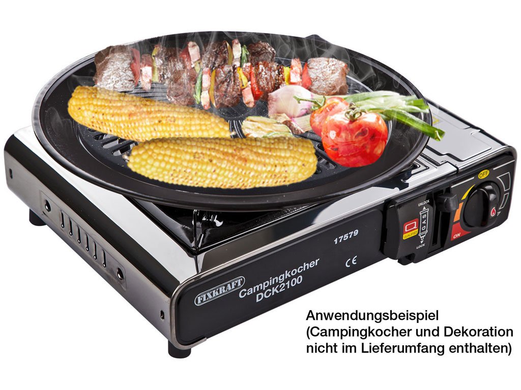 Originalna Dema ploča za plinsko kuhalo/peć. Toplu hranu možete sada imati gdje i kada god poželite. Sa novim nastavkom za kuhalo/peć možete gotovo svaku standardnu peć za kampiranje pretvoriti u malu stanicu za roštilj. Trodijelni set uključuje adapterski prsten, koji je ujedno i posuda za skupljanje masnoće, uklonjivu površinu ploče i odgovarajuću ručku sa integriranim otvaračem za boce.