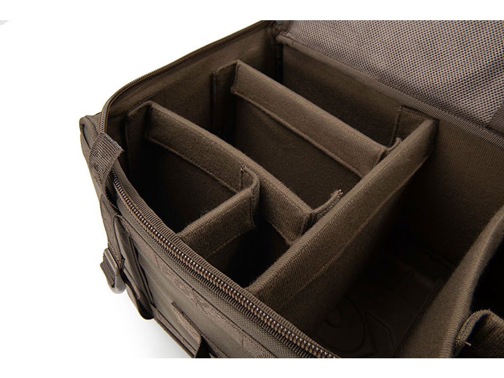 -Opremljen je jednim velikim središnjim pretincem s čičak razdjelnicima