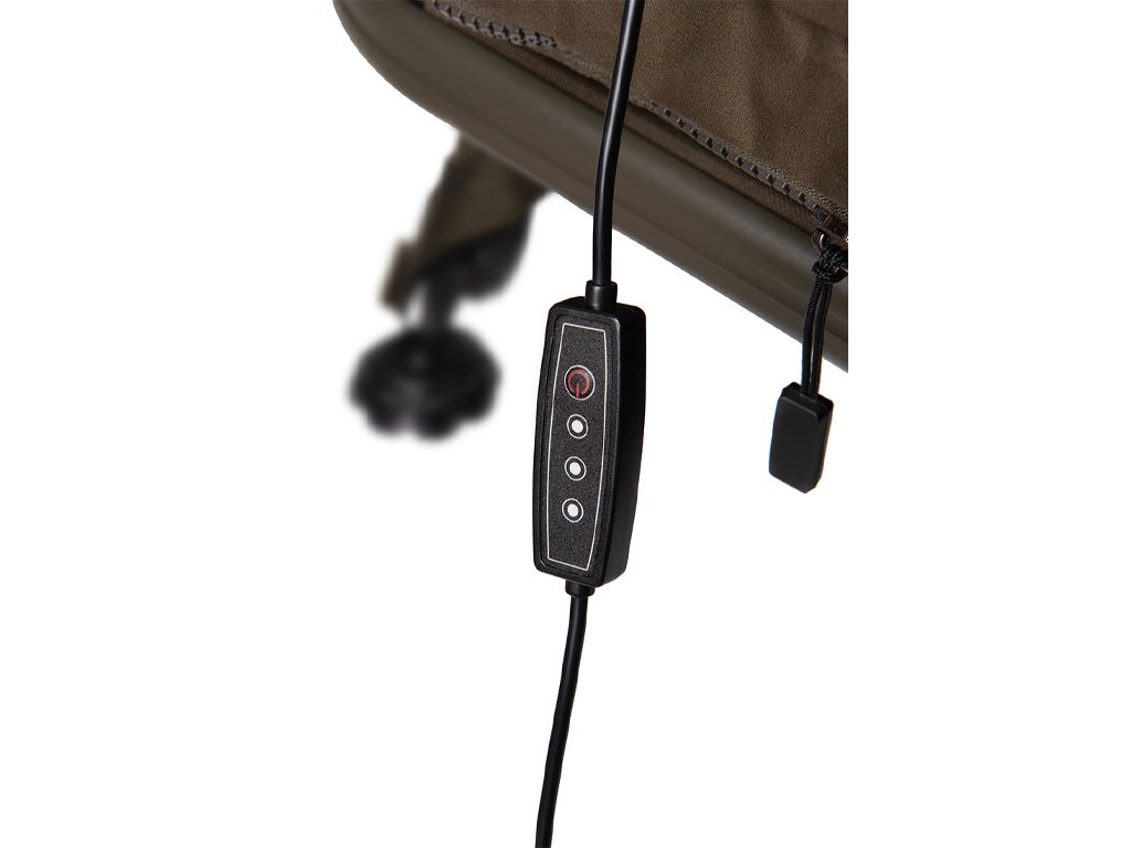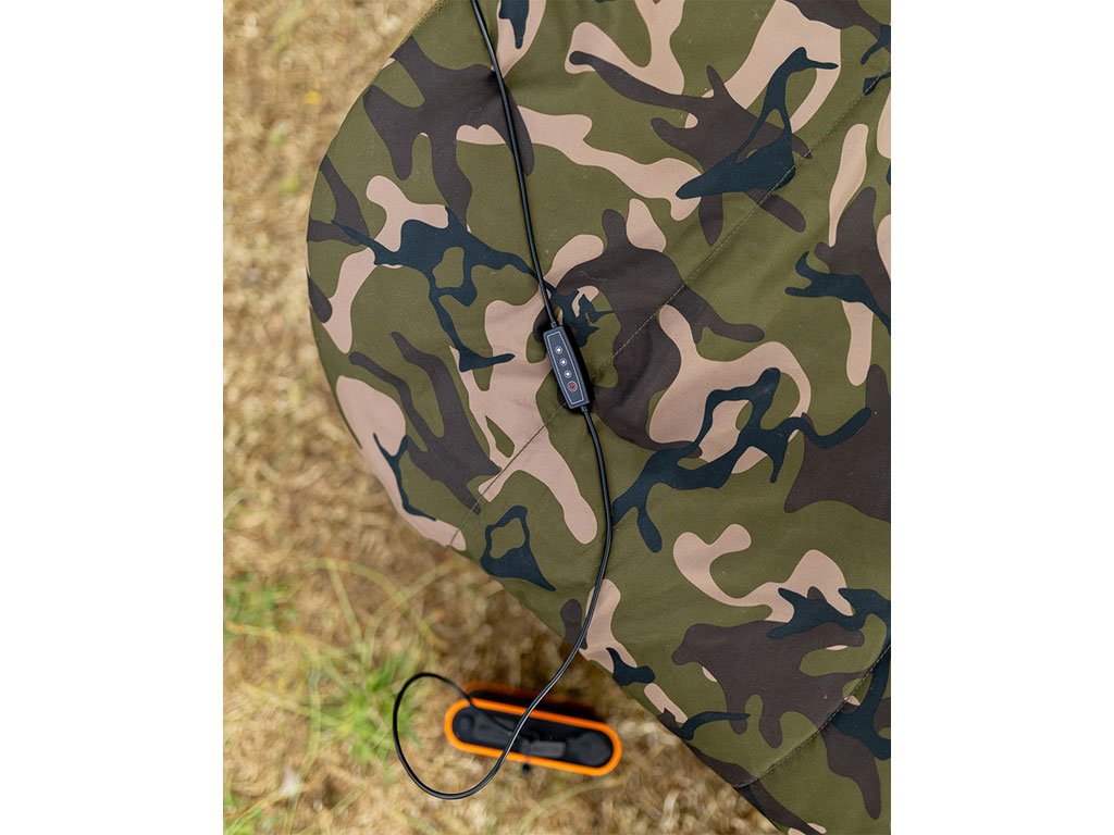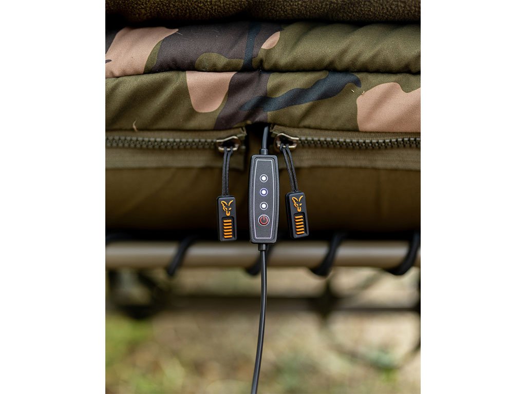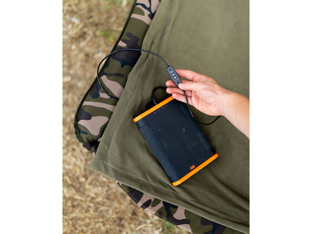-Električni grijači pokrivač od flis materijala namijenjen stavljanju ispod vreće za spavanje ili sistema za spavanje.Toplina prolazi prema gore u vreću za spavanje, a vreće će toplinu zadržati dulje nego ako se pokrivač stavi s gornje strane. Pokrivač ima 3 grijače zone (ramena, struk i stopala). Kontrolni gumb pokrivača nalazi se na sredini s gornje strane 50cm na žici, s USB-C konektorom 60cm od kontrolnog gumba.