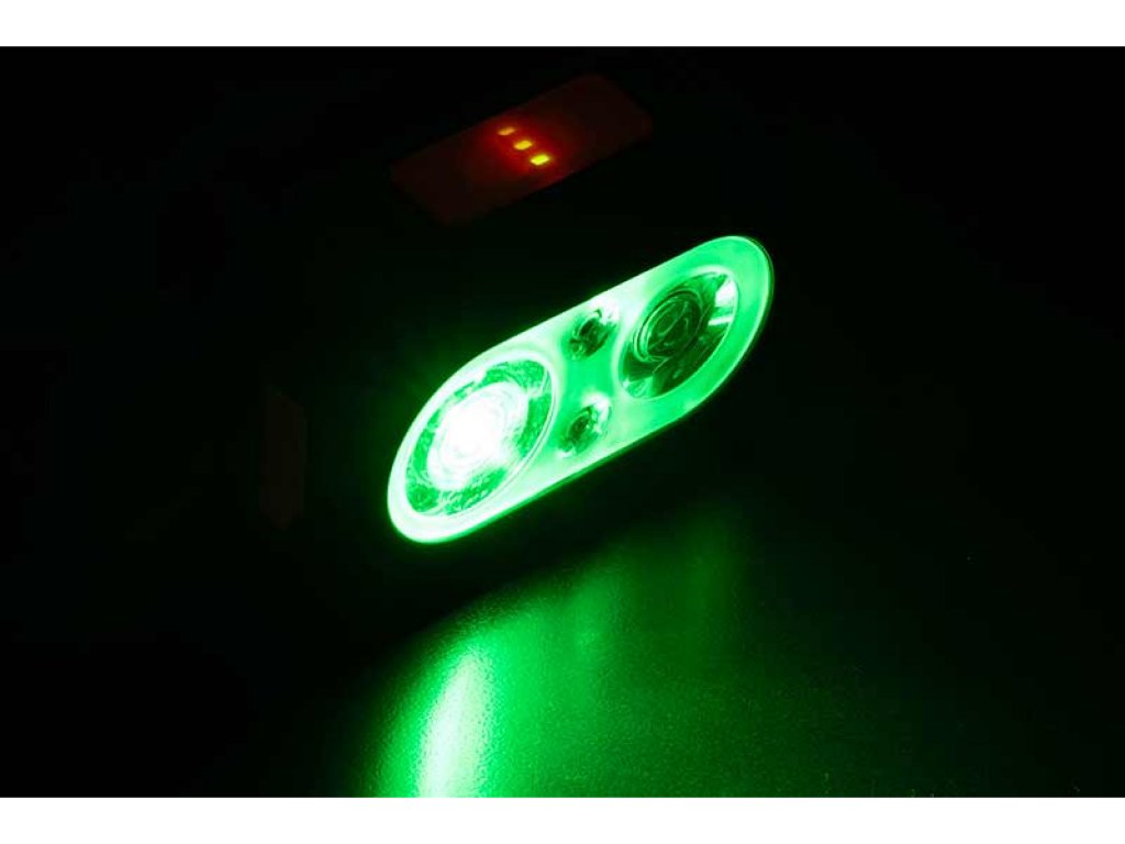 -Funkcijska tipka za boje: jedno pritisak – zeleno 120 lumena, dva pritiska – crveno 50 lumena, treći pritisak – isključivanje