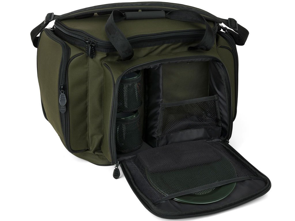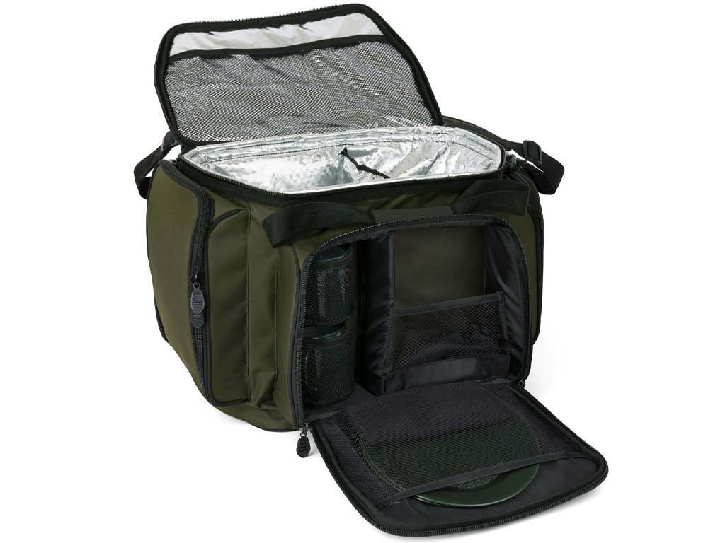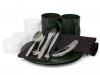 • Veliki prednji džep sadrži: 2x noževe od nehrđajućeg čelika, vilice, žlice i žličice, 2x okrugle zelene tanjure, 2x zelene šalice, 1x vadičep, 1x velike posudice, 2x male posudice, 1x ručnik od mikroflisa