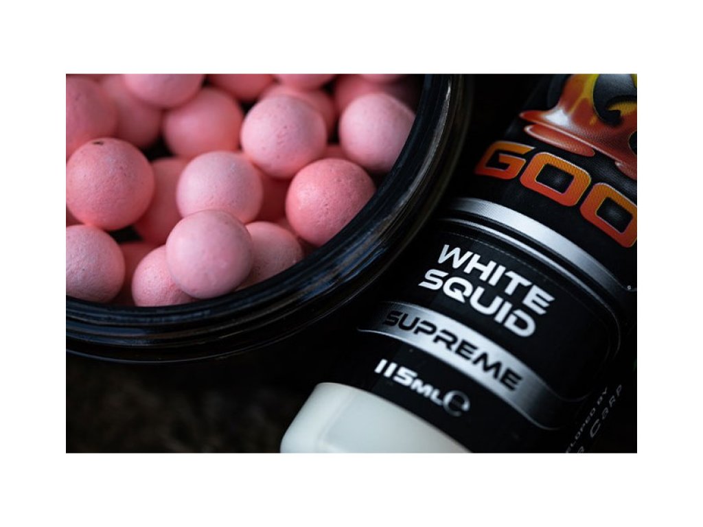 Squid Supreme sada dolazi u bijeloj boji! Ovaj provjereni, prirodno atraktivan okus sada se može koristiti bez promjene boje hook baits-a u rozu. Na zahtjev Dannyja Fairbrassa, White Squid je uspješno testiran kroz posljednje četiri godine. White Squid Supreme je super moćan aditiv, odmah prepoznatljiv i pokazao se neodoljivim za šarane u Velikoj Britaniji i diljem Europe.