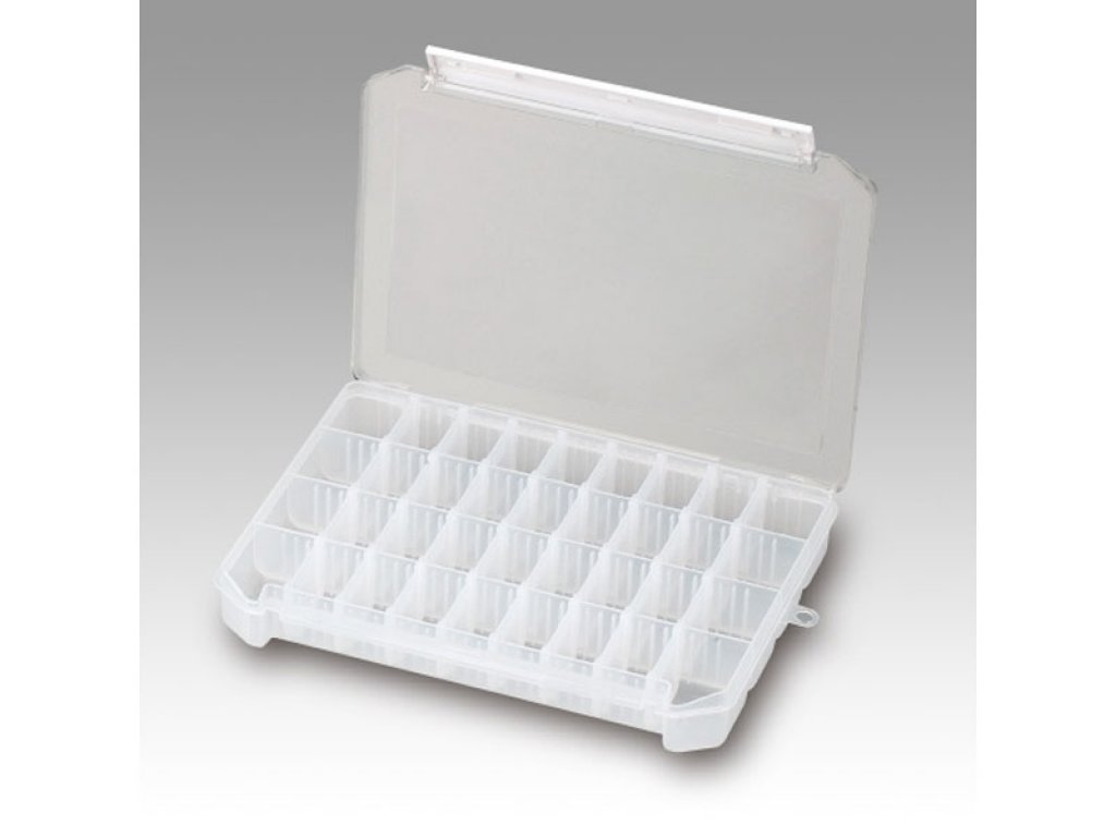 Meiho Clear Case 1200ND plastična je kutija koja ima 3 fiksna sekcije i 24 uklonjive pregrade za ukupno 28 mogućih pretinaca za pohranu. Odlična je za ribolovni pribor, od udica i ostalih sitnih pribora do varalica i opreme.