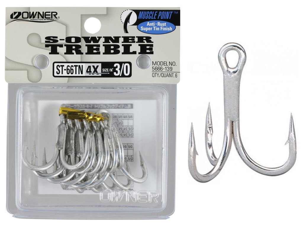Owner ST-66 TN 4X su iznimno jake trokuke namijenjene težem ribolovu. Napravljene su od 4X jake i otporne žice. ST-66 pravo je čudovište od trokuke i odličan su izbor za unarpređivanje bilo koje varalice za morski ribolov. Imaju kraći luk i 3 super oštra snažna vrha. Završni sloj ove trokuke napravljen je u specijalnom vakum finišu i potpuno zaštićen od korozije.