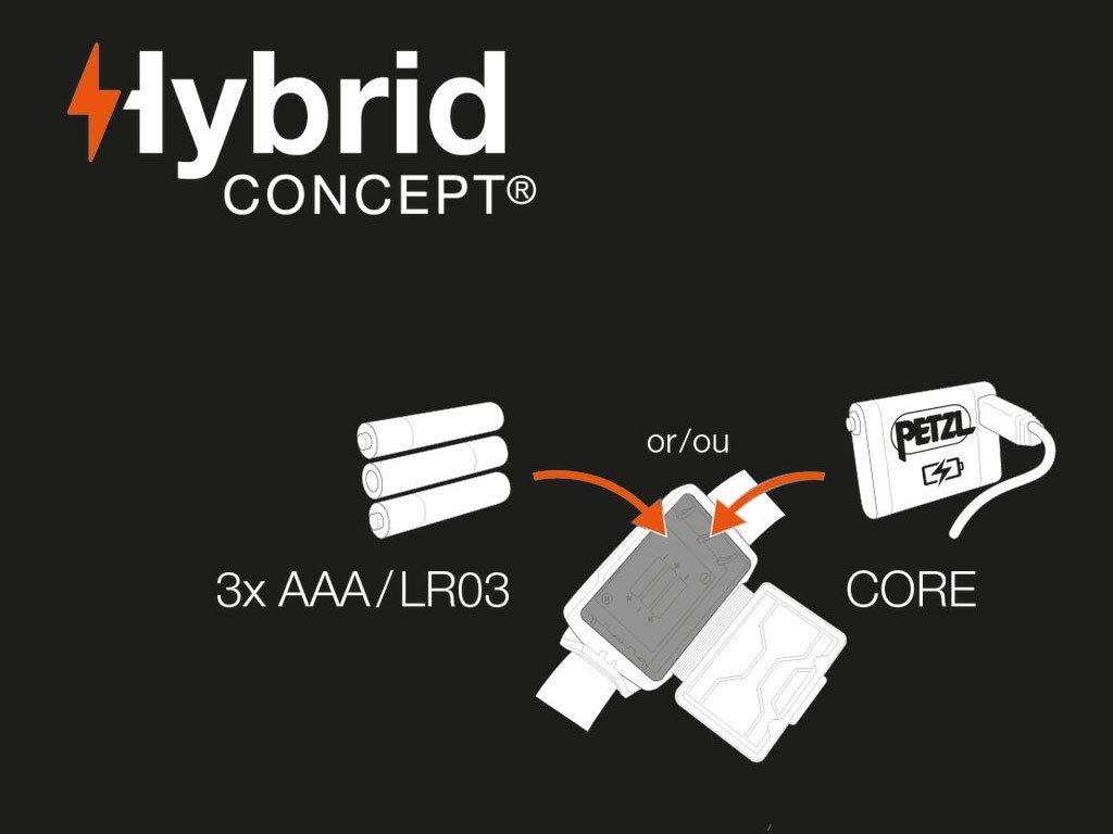 Dolazi s CORE punjivom baterijom i također radi s tri standardne baterije, zahvaljujući dizajnu HYBRID CONCEPT.