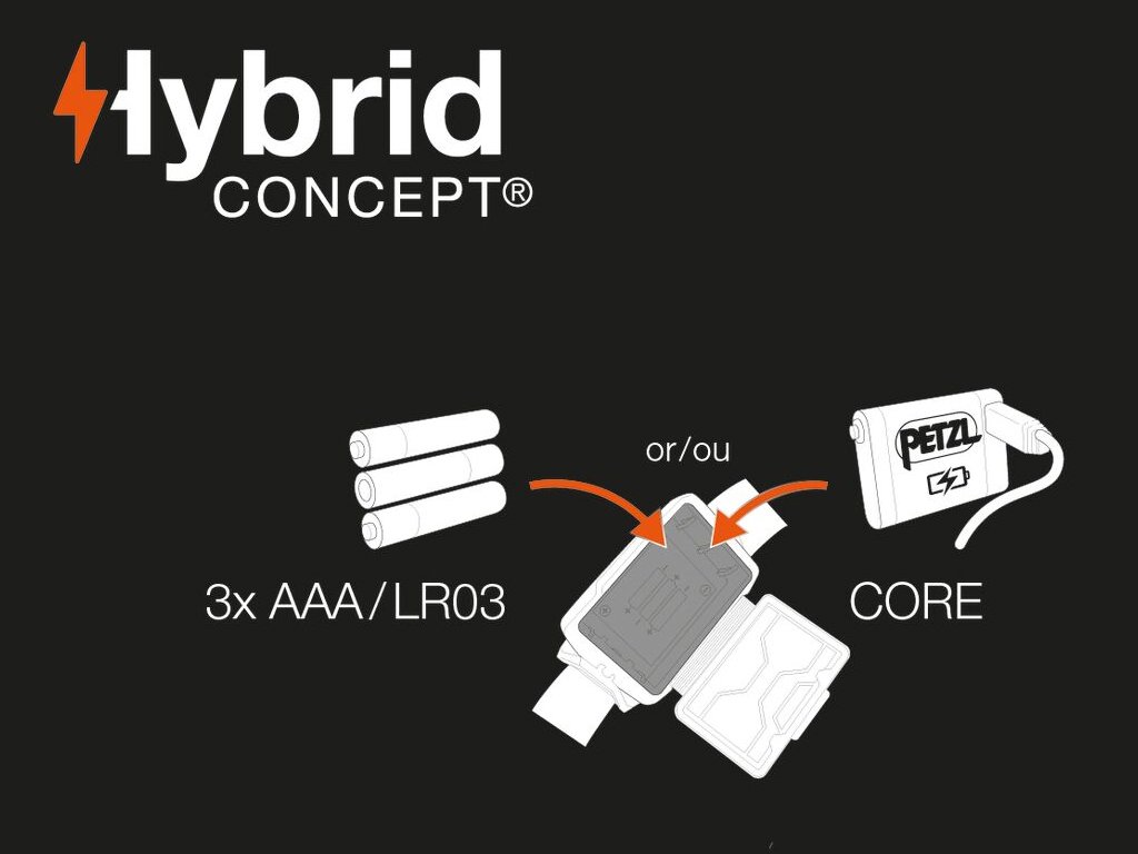 Dolazi s CORE punjivom baterijom i također radi s tri standardne baterije, zahvaljujući dizajnu HYBRID CONCEPT.