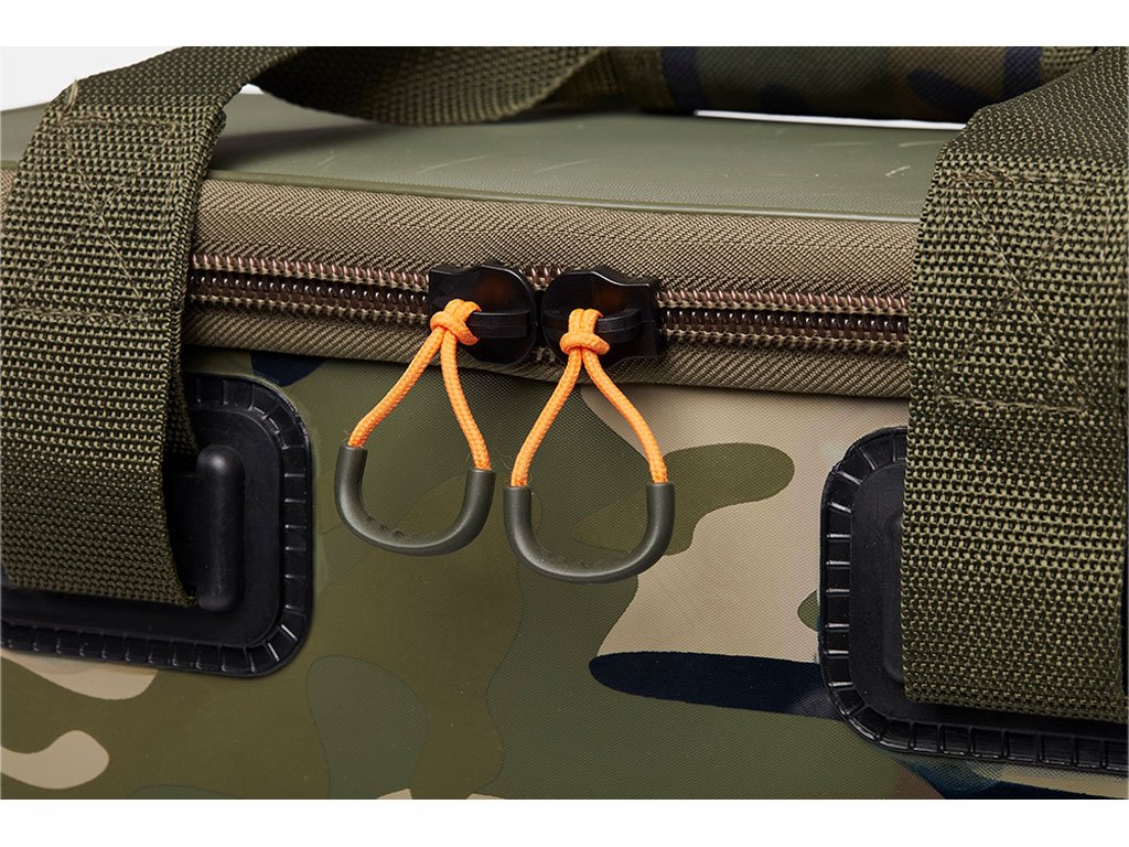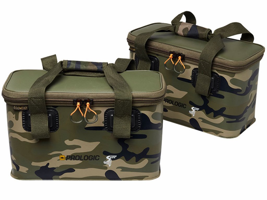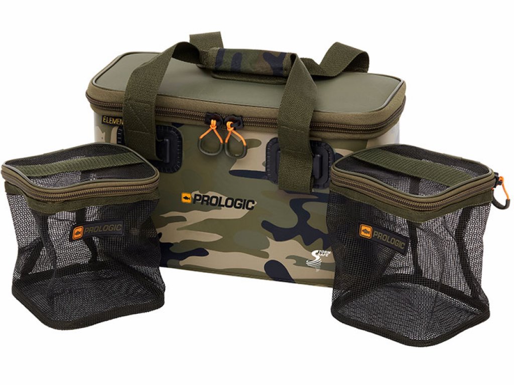 Nove Element Storm-Safe torbe za mamce rade točno onako kako im ime govori – ne samo da su napravljene da odbijaju vodu i drže svoj sadržaj sigurnim i hladnim, već mogu izdržati i najgore vremenske uvjete. Kombinacija otpornog i iznimno čvrstog kamuflažnog EVA materijala sa vanjske strane i hladne izolirane toplinske obloge sa unutarnje strane osigurat da će vaš mamac ostati svježiji duže i da ga neće pokvariti vremenski uvjeti ili glodavci koji bi mogli proći pored njega. U asortimanu su dostupne dvije torbe, isporučene sa jednom velikom ili dvije srednje air-dry torbe, tako da možete odabrati onu koja najbolje odgovara vašem stilu ribolova.