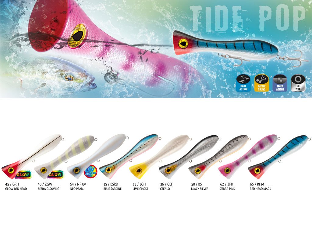 Ova varalica ima veliku glavu i dizajnirana je za pružanje veće površinske akcije uz pomicanje velike količine vode uz stvaranje buke i prskanja te uz pomoć svjetlucanja privlači grabežljivce. Osim izvanredne akcije, Tidepop omogućuje lako dostizanje nevjerojatnih udaljenosti s dodatnom preciznošću čak i kada je jak vjetar. Sadrži jednodijelni dizajn sa žicom i jedinstvenu ABS unutarnju konstrukciju tijela koja pruža vrhunsku snagu. Tide Pop varalici najčešća meta su uglavnom grabežljivci.
