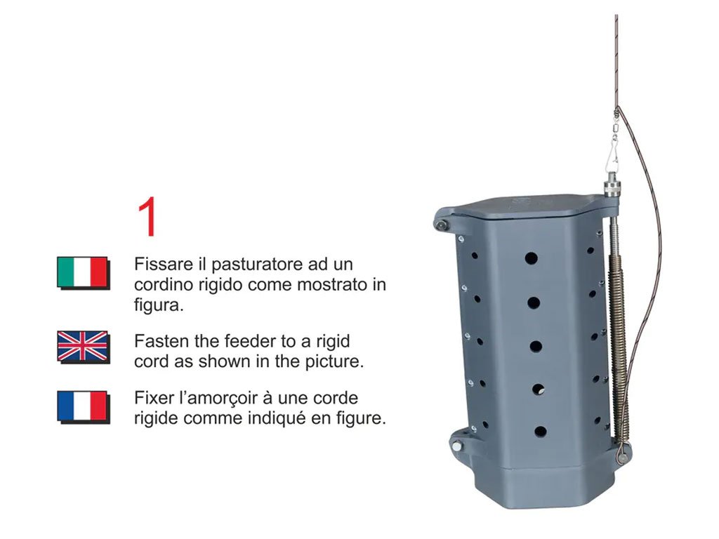 Stonfo hranilica za ribolov iz broda s brzim sistemom otvaranja. Kapacitet hranilice je 1,7 litara dok joj je tečina 1,4 kg što je čini pogodnom za ribolov na dubinama do 50m. Hranilicu je potrebno jednostavno napuniti, zatvoriti te spustiti na željenu dubinu te pouvči konop prema gore kako bi se hranilica otvorila.